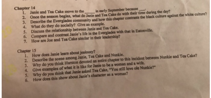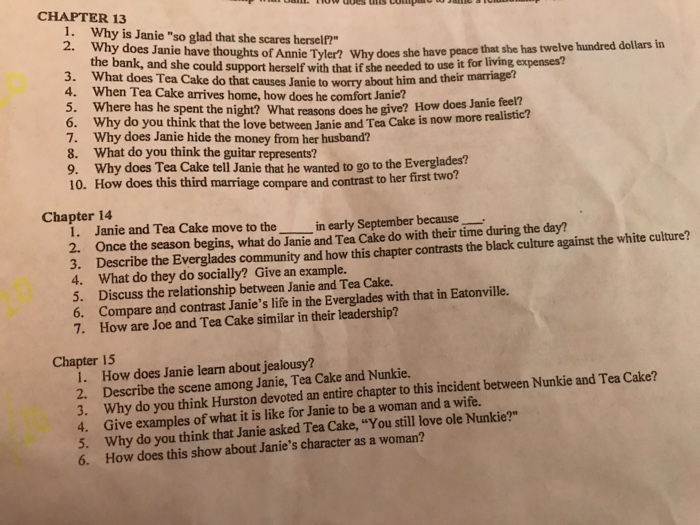 Chapter Questions Their Eyes Were Watching God